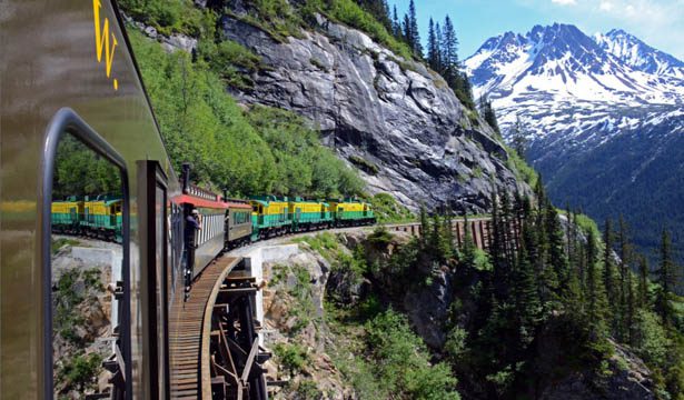 Climb aboard the famous White Pass & Yukon Route train, and step back in time when the railroad first carried weary miners toward their destination in the Klondike. This preferred train ride runs from Skagway, Alaska to Fraser BC, climbing almost 3,000 feet while traversing steep trestles and long tunnels while immersed in the stunning scenery of the famed White Pass.